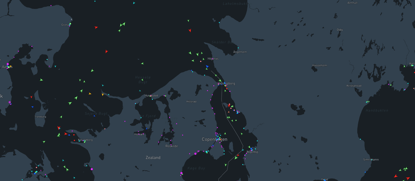The Øresund Strait viewed on Marine Traffic