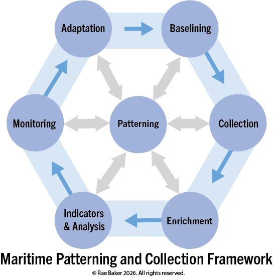 The Maritime Patterning and Collection Framework (MPCF) is my attempt at trying to force analysts to rely less on a blip in time and instead anchor everything in patterns: what is normal, what is repeatable behavior, and what can be exploited. The concept has seven phases: Baselining, Collection, Indicators & Analysis, Enrichment, Monitoring, Adaptation and Patterning, which map directly to the work that an OSINT-heavy analyst in this area already does. Let’s dive in (see what I did there?)